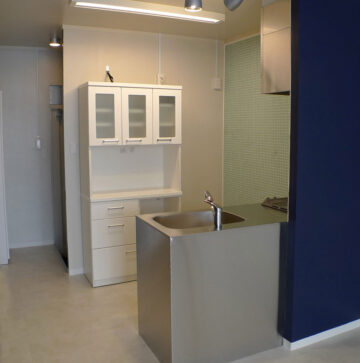 入居者ターゲットや広さに合わせてキッチンサイズを決めたら、余ったスペースにちょっとした腰壁の台を造ったり、レール+可動棚を設置して家電やゴミ箱置場として使えるようにした方がスッキリとした暮らしを提供できることでしょう。
